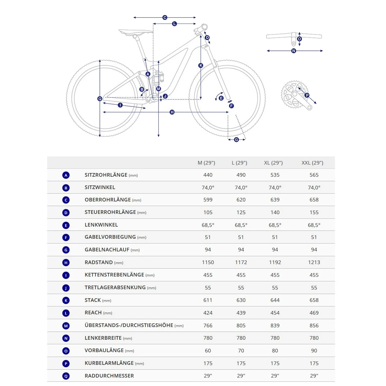 - De geometrie van het frame werd ontwikkeld om de balans en het rolgedrag van 29″ wielen te optimaliseren.